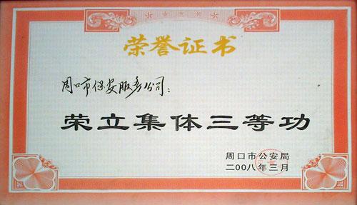 榮譽-2007年度全市單位內(nèi)部治安保衛(wèi)工作集體三等功