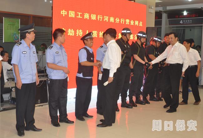 2013年9月26日下午17時30分,河南分行營業(yè)網(wǎng)點防劫持人質(zhì)搶劫應(yīng)急預(yù)案演練在周口分行營業(yè)部實施了演練。