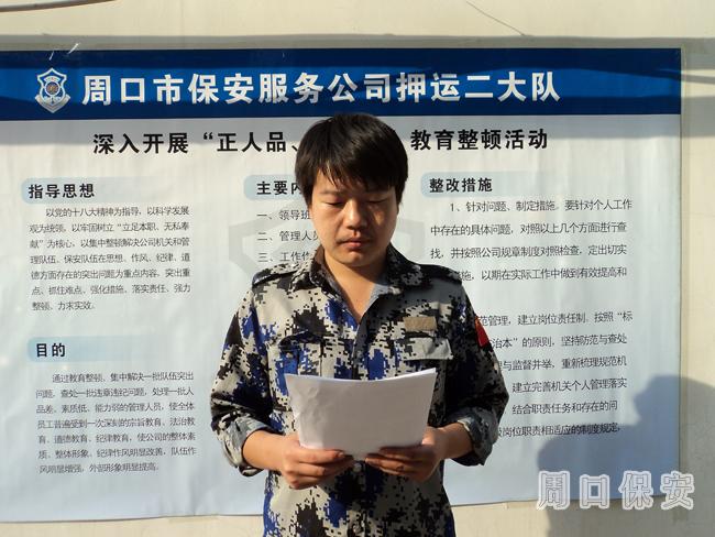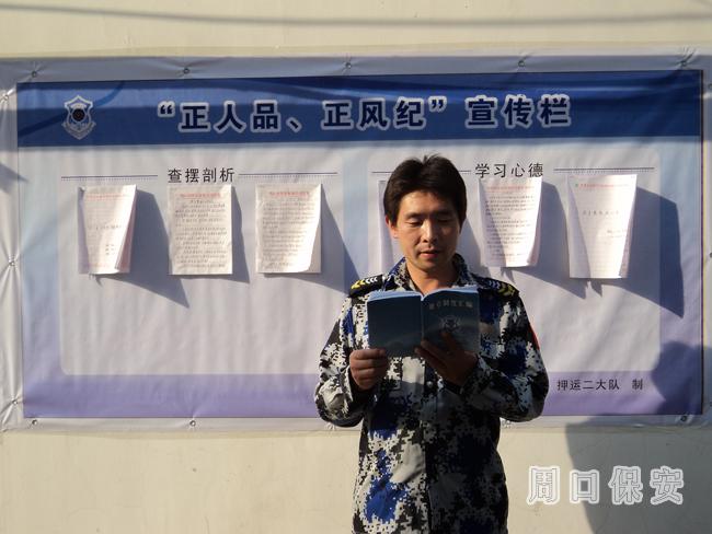 為較好地貫徹落實(shí)公司“正人品、正風(fēng)紀(jì)”教育整頓活動(dòng),押運(yùn)二大隊(duì)及時(shí)召開全體守押隊(duì)員,組織學(xué)習(xí)公司教育整頓方案及計(jì)劃安排,并提出教育整頓的目的及有關(guān)要求。