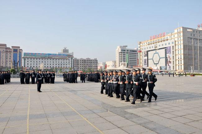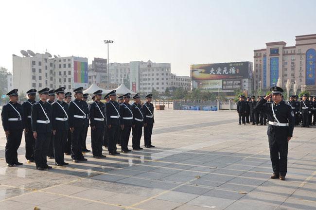 保安隊(duì)員大會操  五一廣場展風(fēng)采