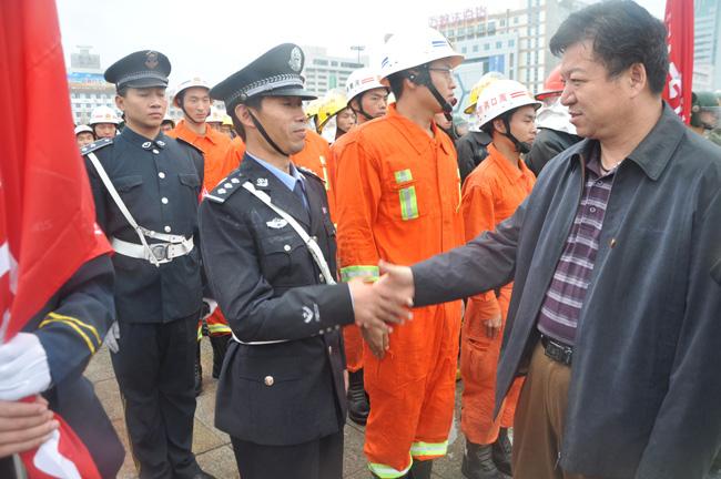 下午4時,保安公司接到市公安局指揮中心集結指令,接到指令后,保安公司總經(jīng)理韓國華立即下達出發(fā)命令,人防經(jīng)理蔣子華帶領保安隊員安排部署后,迅速登車趕往集結地點,在預定時間內(nèi),保安公司全體人員,裝備整齊地到達指令地點。同時,來自公安、武警、消防、水利、氣象、環(huán)保、醫(yī)療等多警種、多部門也及時趕到集結地點。