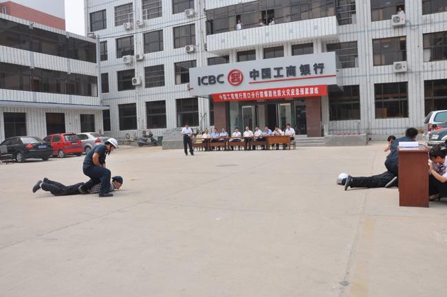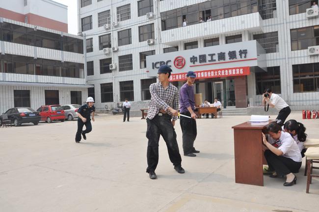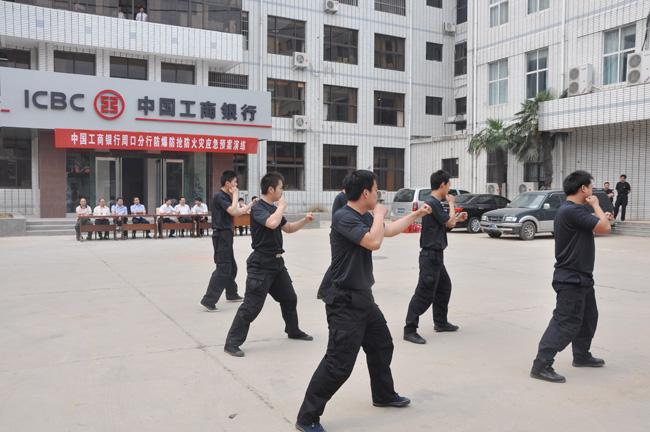 6月4日上午,在周口市工商銀行院內(nèi)舉行,周口市保安服務(wù)公司與中國工商銀行周口分行聯(lián)合舉辦防爆防搶防火災(zāi)應(yīng)急預(yù)案演練。周口市保安服務(wù)公司總經(jīng)理韓國華、押運經(jīng)理秦平柱、中國工商銀行周口分行行長梁光德、副行長信亞彬等領(lǐng)導(dǎo)出席演練現(xiàn)場。周口市銀監(jiān)局、中國銀行周口分行、中國建設(shè)銀行周口分行、中國農(nóng)業(yè)銀行周口分行、周口市商業(yè)銀行等單位人員也親臨現(xiàn)場,觀看了此次應(yīng)急預(yù)案演練。