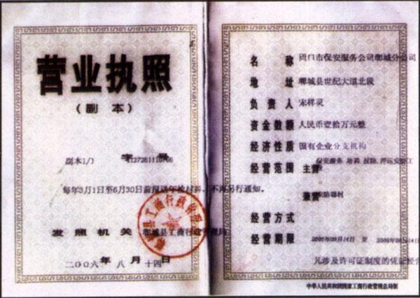 鄲城分公司資質(zhì)