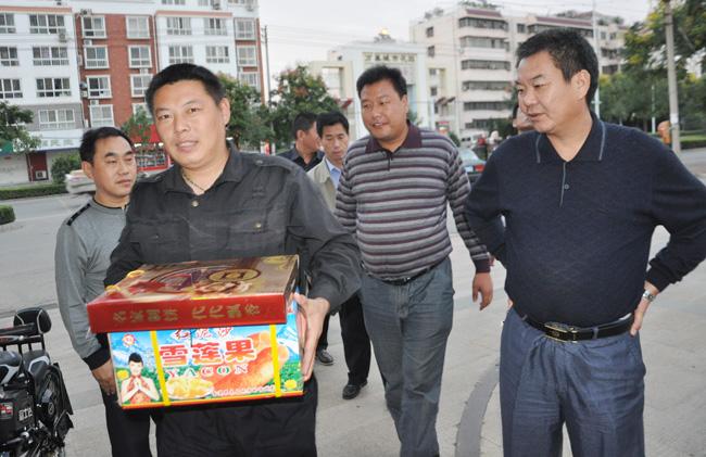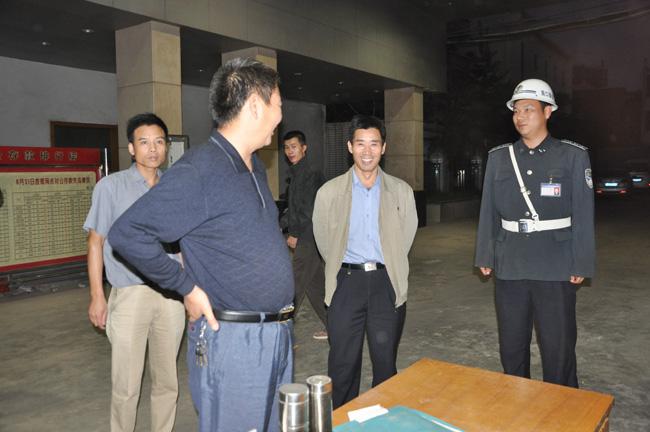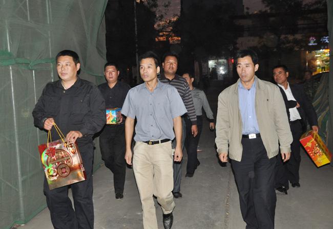 在周口市公安局執(zhí)勤崗點,公司黨總支書記鄭明山對執(zhí)勤的保安隊員說,今天是我們傳統(tǒng)的節(jié)日中秋節(jié),是個親人朋友團聚的日子,由于工作的性質(zhì),我們還要堅守在自己的崗位,我代表韓國華總經(jīng)理和公司領導向你們表示感謝,大家辛苦了!值勤隊員對公司領導的到來表示了熱烈的歡迎,對領導的關心和體貼表示深深的感謝。