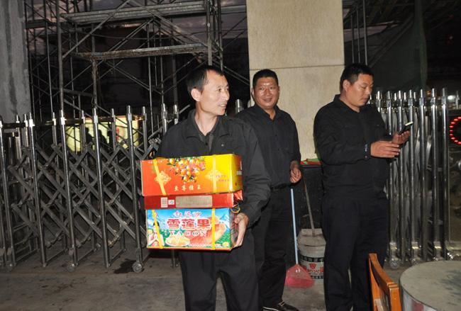 隨后,公司領導分別來到周口工行、中國聯(lián)通、中國石油等執(zhí)勤崗點,向在崗執(zhí)勤的保安人員送去月餅、香煙、水果等慰問品,并向他們送去節(jié)日的問候和誠摯的祝福。