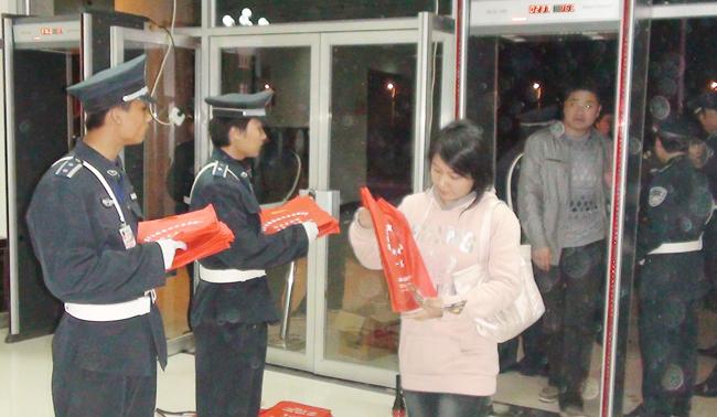 為確保做好此次大型活動(dòng)的安保工作順利進(jìn)行,周口市保安服務(wù)公司制訂了嚴(yán)密的執(zhí)勤安保方案,總經(jīng)理韓國華擔(dān)任總指揮。保安公司共抽派170名優(yōu)秀保安隊(duì)員,20名特勤隊(duì)員,由公司人防經(jīng)理蔣子華、人防副經(jīng)理耿學(xué)爭(zhēng)統(tǒng)一指揮帶領(lǐng),負(fù)責(zé)體育館周圍及場(chǎng)內(nèi)秩序進(jìn)行安全保衛(wèi)。為了確保安保工作萬無一失,公司領(lǐng)導(dǎo)積極采取有效措施,達(dá)到了預(yù)期的效果。一是根據(jù)晚會(huì)需要超前準(zhǔn)備周密安排,公司反復(fù)論證晚會(huì)安保方案,對(duì)每個(gè)細(xì)節(jié)都進(jìn)行精心部署;二是公司領(lǐng)導(dǎo)多次深入晚會(huì)現(xiàn)場(chǎng)實(shí)地考察,布置工作;三是各帶兵單位高度重視,責(zé)任到人。所有參戰(zhàn)人員放棄休息,確保人員到位;四是抽調(diào)精干保安員負(fù)責(zé)檢票、外場(chǎng)執(zhí)勤、明星貼身護(hù)衛(wèi)等安保工作。
