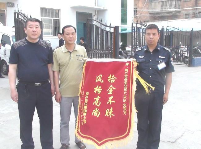 5月19日,譚先生帶著家人,將一面繡有“拾金不昧,風(fēng)格高尚”字樣的錦旗送到了市保安公司,表達(dá)他們對保安公司的感謝。