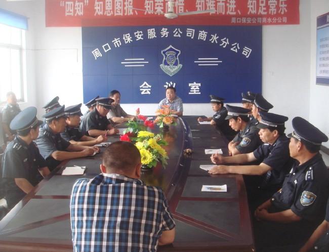 為深入貫徹落實(shí)市保安總公司關(guān)于在全市保安系統(tǒng)開展“四知”教育的文件精神,商水保安分公司進(jìn)行了傳達(dá)貫徹,并結(jié)合工作實(shí)際制定了活動(dòng)開展方案。商水保安分公司押運(yùn)大隊(duì)于20日晚進(jìn)行教育動(dòng)員,分公司其它部門成員于22日上午進(jìn)行教育動(dòng)員。動(dòng)員中認(rèn)真學(xué)習(xí)了市保安總公司周保字(2011)第九號文件和開展“四知”教育活動(dòng)的實(shí)施方案。