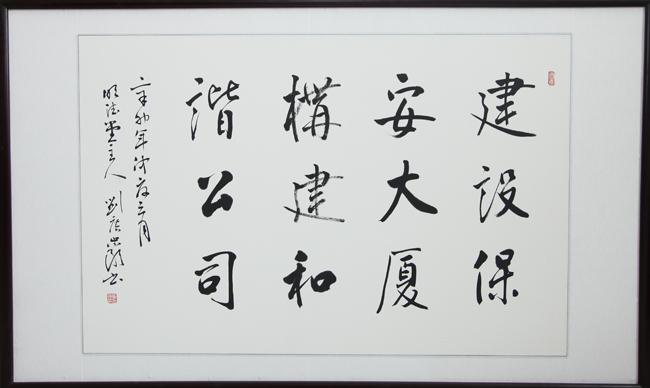 教育中,公司邀請(qǐng)周口市書(shū)法家協(xié)會(huì)劉廣巖、靳玉峰、李大慶、張華中等六名書(shū)法家為公司提詞,書(shū)寫(xiě)名言警句,書(shū)法家們揮毫潑墨,寫(xiě)下了“建設(shè)保安大廈,構(gòu)建和諧公司”“保一方平安”“厚德載物”“知足常樂(lè)”“自強(qiáng)不息”等作品??吹竭@一幅幅優(yōu)秀作品,保安員既欣賞了書(shū)法、陶冶了情操、又理解了作品的含義,增強(qiáng)了責(zé)任感和使命感。