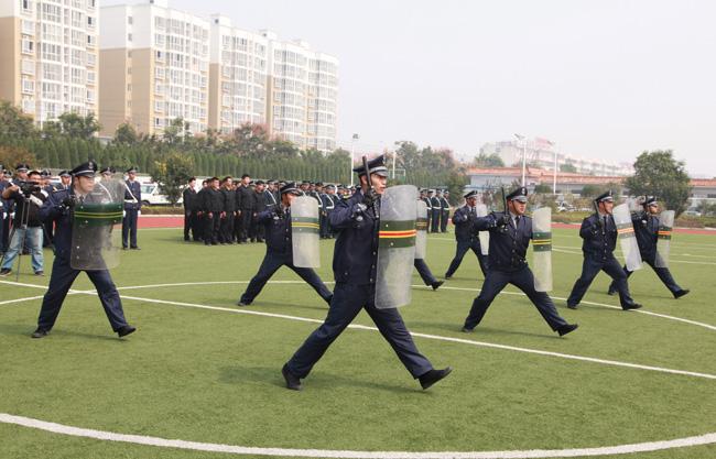 下圖為市保安服務公司會操表演現(xiàn)場。