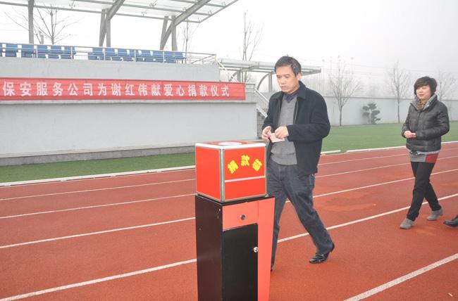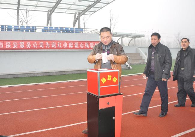 12月3日上午,公司在市局綜合訓練場隆重舉行向保安員謝紅偉捐款活動,公司總經(jīng)理韓國華、公司黨總支書記鄭明山親臨捐款儀式現(xiàn)場,同公司機關(guān)各部門員工及廣大保安隊員一同參加捐款活動。