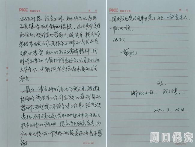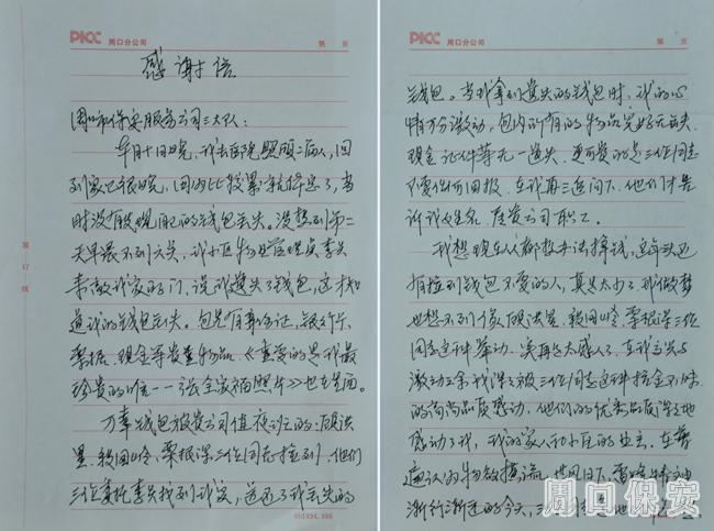 顧洪星、段國嶺、栗根深三名隊員看似非驚天動地的平凡舉動,在郵政小區(qū)廣大業(yè)主中引起強烈反響。按照孔先生所言,小區(qū)業(yè)主多日來都在為三名隊員崇高品德所感動,他們在祝福三名隊員,同時也衷心感謝培養(yǎng)出高尚素質保安隊員的周口保安服務公司。