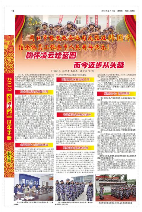 【周口日?qǐng)?bào)】專版刊發(fā)保安公司特別報(bào)道《胸懷凌云繪藍(lán)圖 而今邁步從頭越》