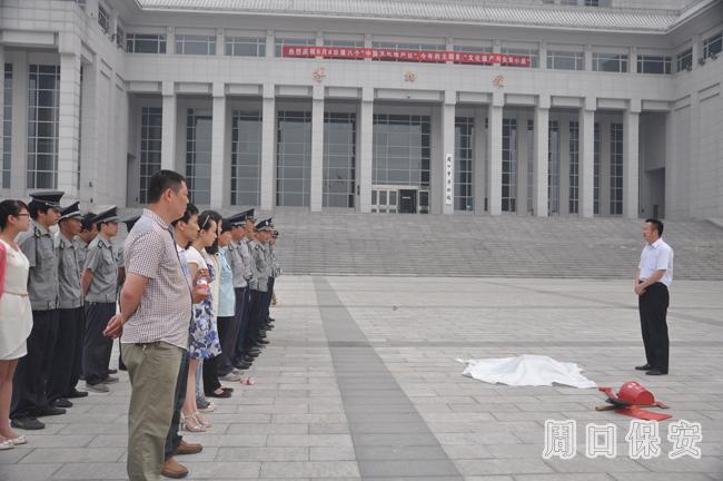 為較好地做好周口市博物館防火防災預防工作,提高保安員與職工的防火意識及能力,2013年6月6日17時,周口保安服務公司五大隊駐周口市博物館保安員與職工聯(lián)合組織了一場防火演練。文化局李局長、韓局長及博物館周館長、李館長、穆館長、周口市保安服務公司辦公室主任耿學爭、等參加了演練。
