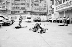 近日,周口市保安服務(wù)公司與中國銀行聯(lián)合進(jìn)行了運(yùn)鈔車防搶劫演練和消防安全演練,以確保押運(yùn)標(biāo)的物的安全。圖為演練現(xiàn)場。