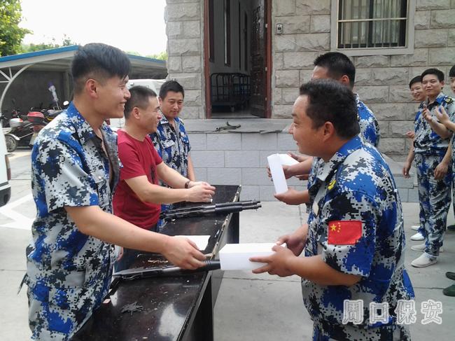 2013年7月15日,周口市保安服務(wù)公司押運(yùn)沈丘大隊(duì)組織60名金融守押隊(duì)員在農(nóng)村信用社進(jìn)行“槍支分解結(jié)合”考核。通過(guò)考核,進(jìn)一步提高守押隊(duì)員對(duì)槍支使用的熟練程度,增強(qiáng)守押工作安全系數(shù),確保金融押運(yùn)安全。沈丘押運(yùn)分公司經(jīng)理、押運(yùn)大隊(duì)長(zhǎng)李清對(duì)這次取得優(yōu)異成績(jī)的隊(duì)員給予了獎(jiǎng)勵(lì),并鼓勵(lì)他們切實(shí)做到干一行、愛(ài)一行、精一行,高標(biāo)準(zhǔn)、高質(zhì)量地完成各項(xiàng)任務(wù),在平凡崗位上努力作出不平凡的成績(jī)。