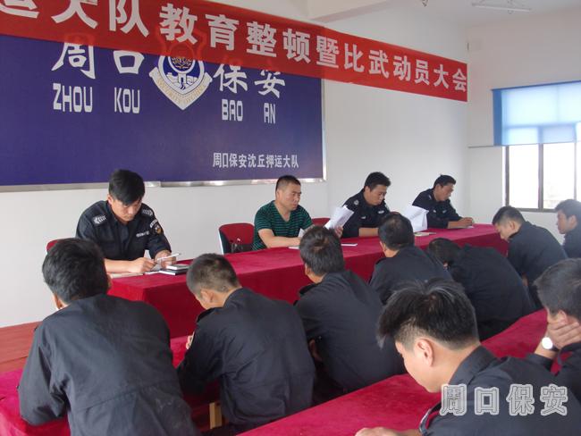 為較好地落實(shí)公司“正人品、正風(fēng)紀(jì)”教育整頓計(jì)劃,進(jìn)一步加強(qiáng)保安隊(duì)伍管理,切實(shí)整治保安隊(duì)伍中存在的突出問題,9月18日,周口市保安服務(wù)公司押運(yùn)沈丘大隊(duì)組織召開了教育整頓活動動員大會。
